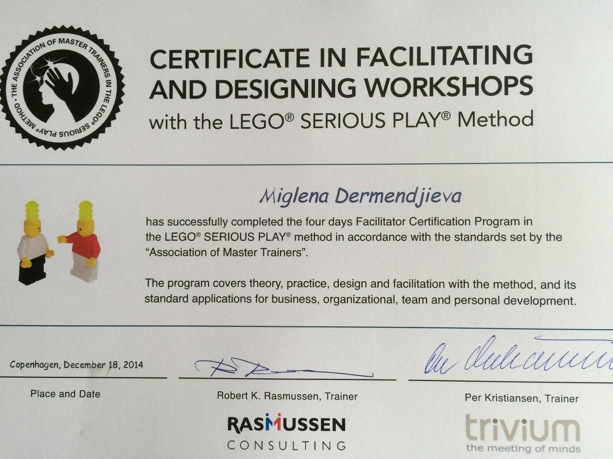 130 часа (ACTP) Erickson College International, завършено през 2012 г. 128 часа (ACSTH) ITS, завършено през 2009 г., 145 часа (ACSTH) Брой обучителни часове по коучинг в трите сертификационни програми: общо за трите програми над 400 часа